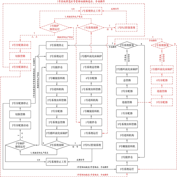 当2号系统与3号系统或1号系统与3号系统进行切换时的短暂时间里尽量使用皮带机或其他设备向锅炉内提供原煤,以使锅炉正常运作。