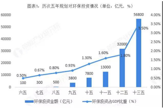 改革开放以来,我国经济快速发展,综合国力显著增强,为持续发展,对环境保护的投入不断增加。历年来五年规划对环保投资不断增加,“九五”期间,我国环保投入达3600亿元,环保投入占GDP的比例首次超过1%。“十五”期间,环保投入约占到GDP的1.3%。“十二五”期间,环保投入的比例进一步增大。环保投资力度的不断加大推动我国环保产业不断提升。