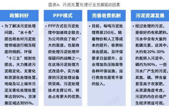 行业的盈利性为发展带来不少动力,但政策的加码、收费机制的完善及污泥资源的发展等会进一步对东航也扩张。为解决污泥处理问题,先在“水十条”中提出会对污泥处理领域进行相当程度的倾斜。后在环保“十三五”规划也提出,大力推进污泥稳定化、无害化和资源化处理处置,地级及以上城市污泥无害化处理处置率达到90%,京津冀区域达到95%。国家层面政策法规的加码,无疑大大驱动了污泥处理处置的资源化与无害化进程,相关的处理技术与设备也得到快速发展,各大污水厂“重水轻泥”的现象也得到一定程度的缓解。